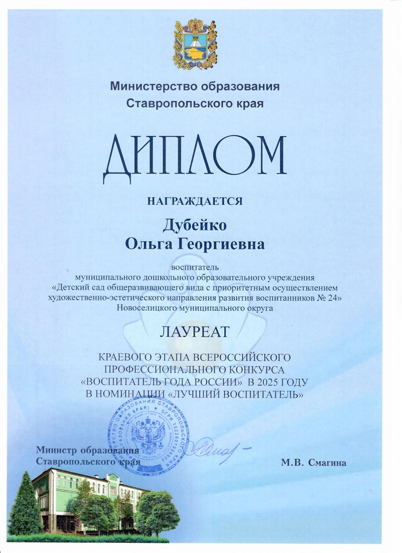 Сертификат победителя муниципального конкурса "Воспитатель года России - 2025"