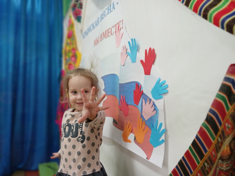 Ладошки из цветной бумаги от группы "Ромашка" стали олицетворением мира и солидарности народа нашей большой страны.